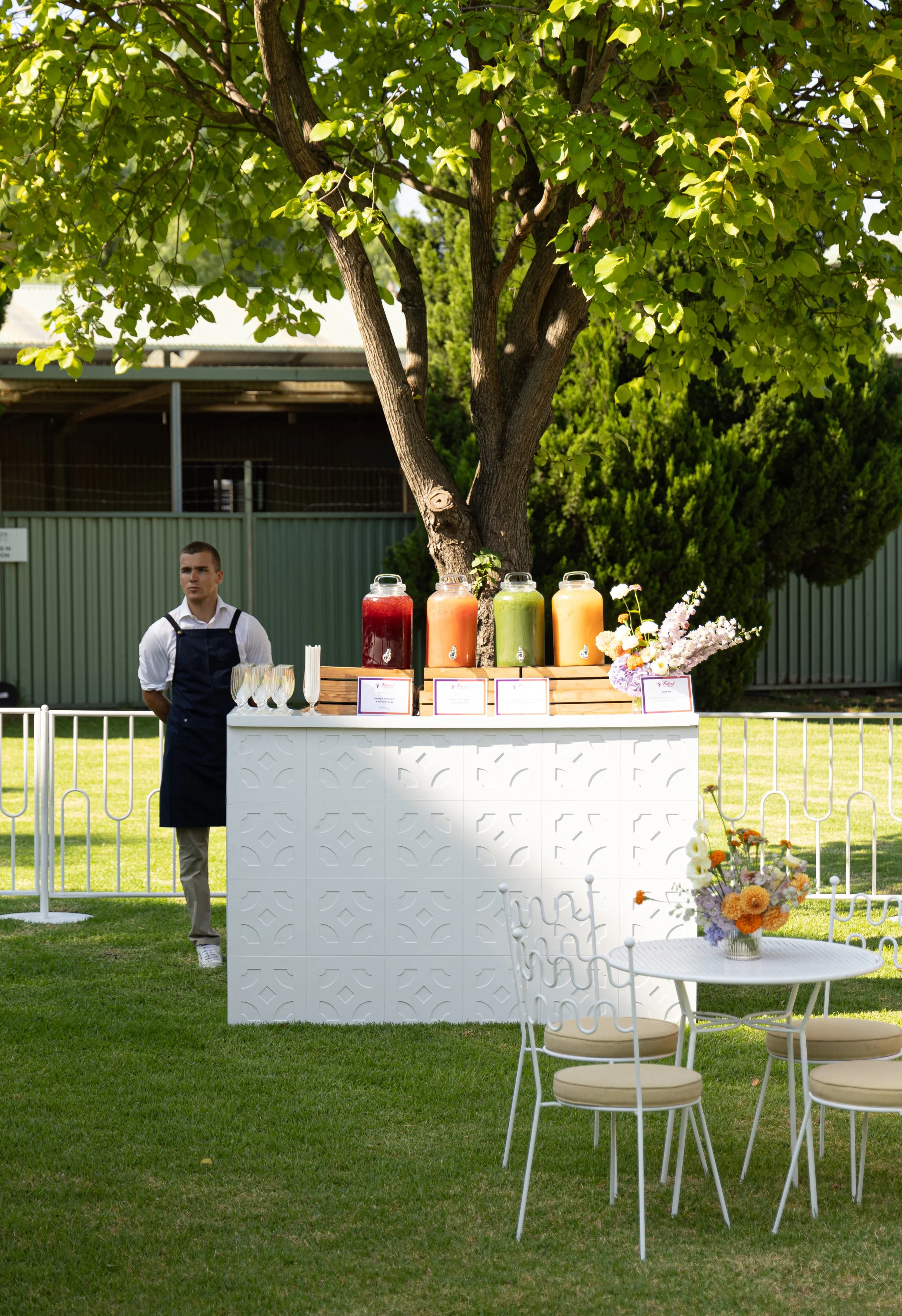 At the Victoria Racing Club’s media launch, we created a series of bespoke fresh juices pressed on-site, vibrantly coloured, and tailored to the event’s theme. Think ruby grapefruit with chilli and kaffir lime, or pineapple and ginger over crushed ice.